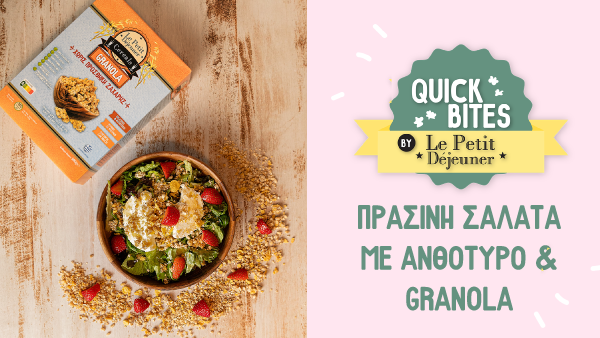 Απόλαυσε την αγαπημένη σου Granola όλες τις ώρες της ημέρας, ακόμη και στο μεσημεριανό σου! Φτιάχνουμε μια super γευστική και χορταστική Πράσινη Σαλάτα με ανθότυρο, granola & φράουλες!