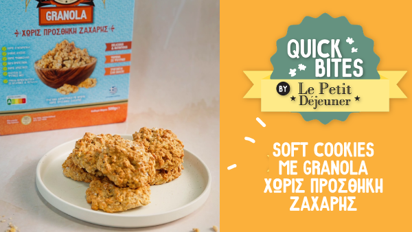 Ώρα για 𝐐𝐮𝐢𝐜𝐤 𝐁𝐢𝐭𝐞𝐬 με τη 𝐋𝐞 𝐏𝐞𝐭𝐢𝐭 𝐃𝐞́𝐣𝐞𝐮𝐧𝐞𝐫! Μια συνταγή που θα λατρέψουν μικροί και μεγάλοι...σαν snack στο σχολείο, στη δουλειά, παντού! Soft Cookies με Granola χωρίς προσθήκη ζάχαρης!